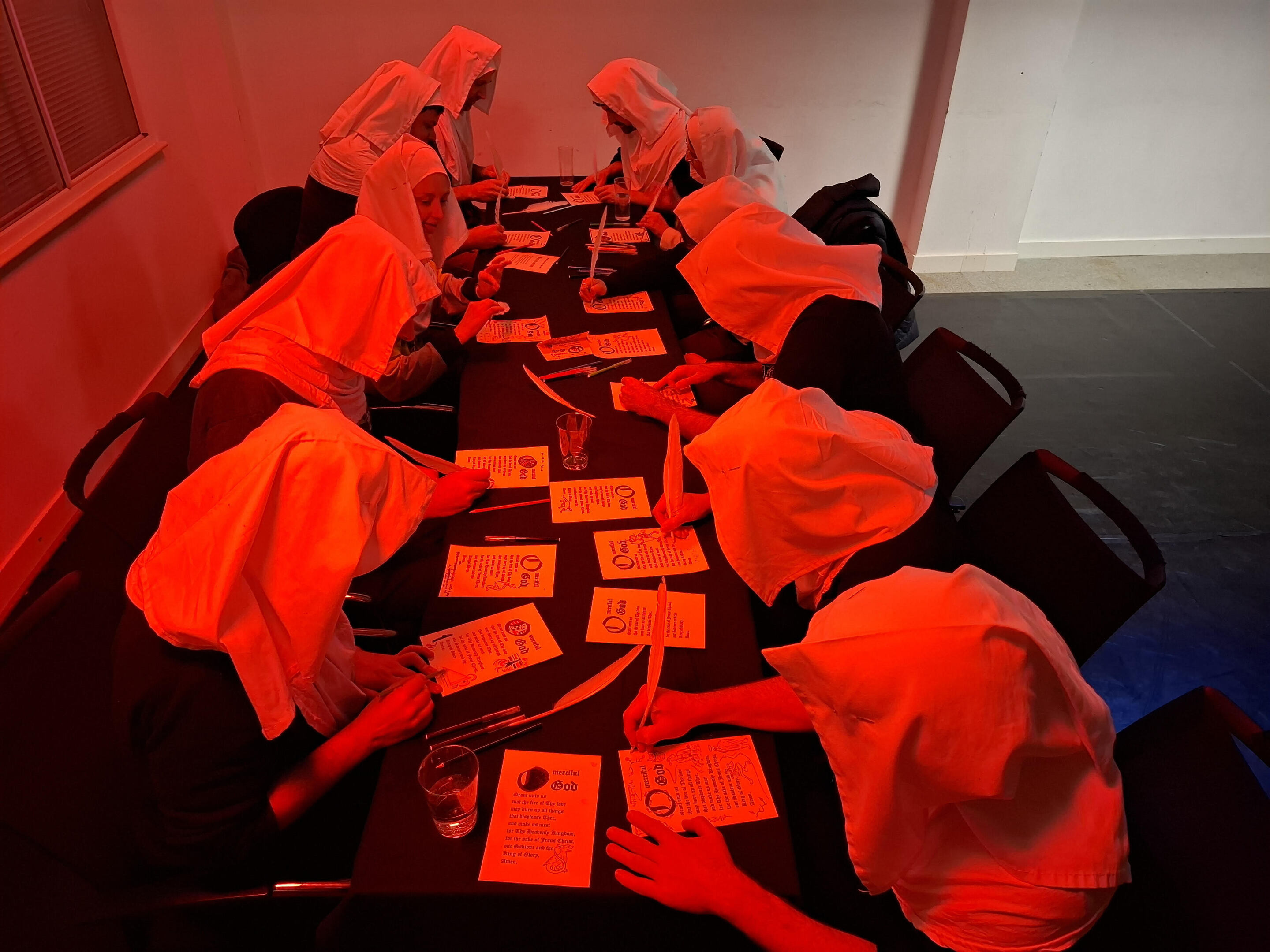 This larp is about a group of medieval nuns who are told that in five days their abbey will be blessed with a visit from a traveling priest and miracle worker. The priest is making his way through the plague-ridden countryside to deliver a sermon. As they anticipate his benediction, the nuns ruminate on their feelings about themselves, the others, God, and the arrival of the vagabond priest, which has awakened in them unprecedented fears and desires. Play to find out: who is this wandering priest to you? Threat, temptation, redemption? Or something else entirely?